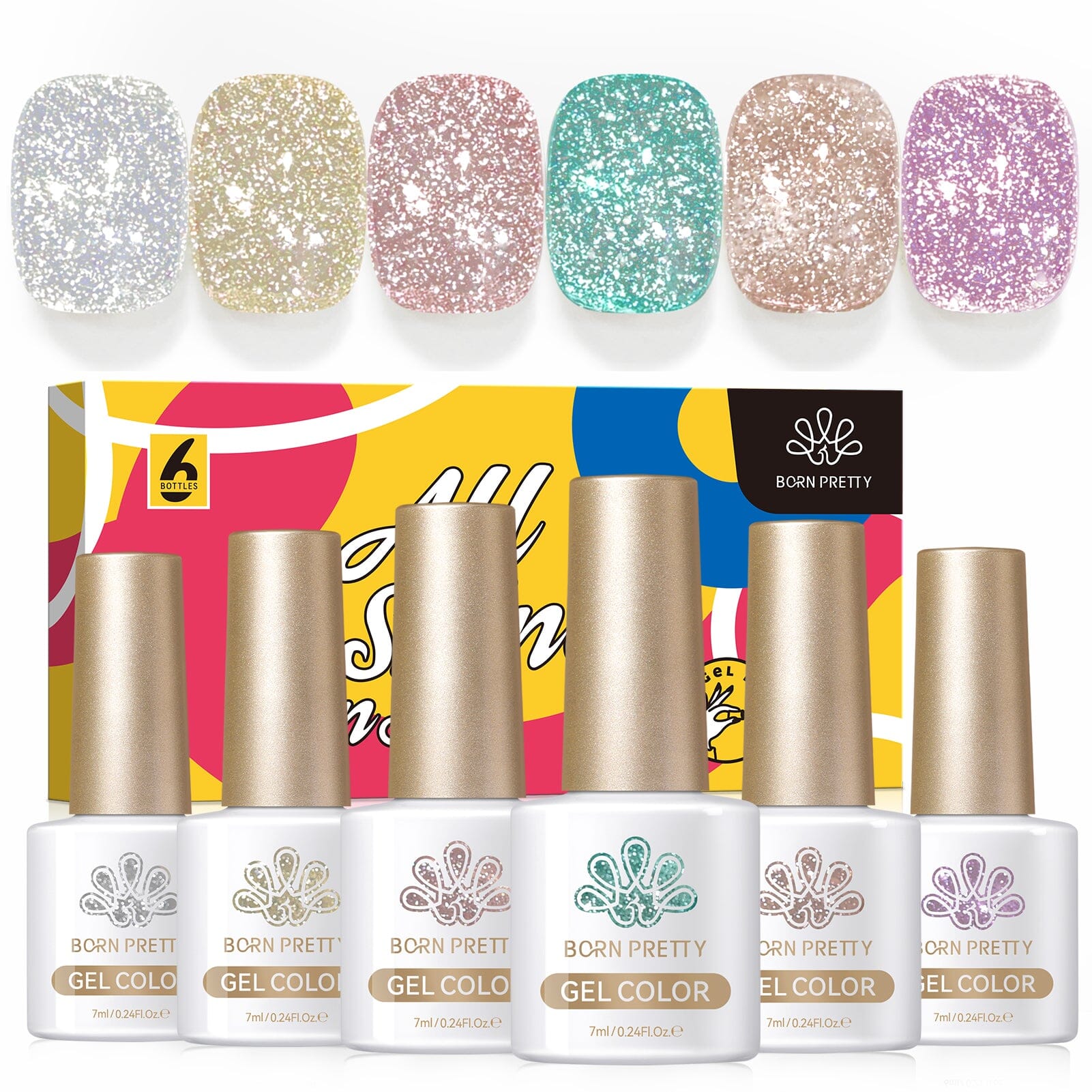 BORN PRETTY 6 Bottles 7ml Carat Mirage Reflective Glitter Gel ultra Shine Soak Off UV Gel Nail Art Varnish